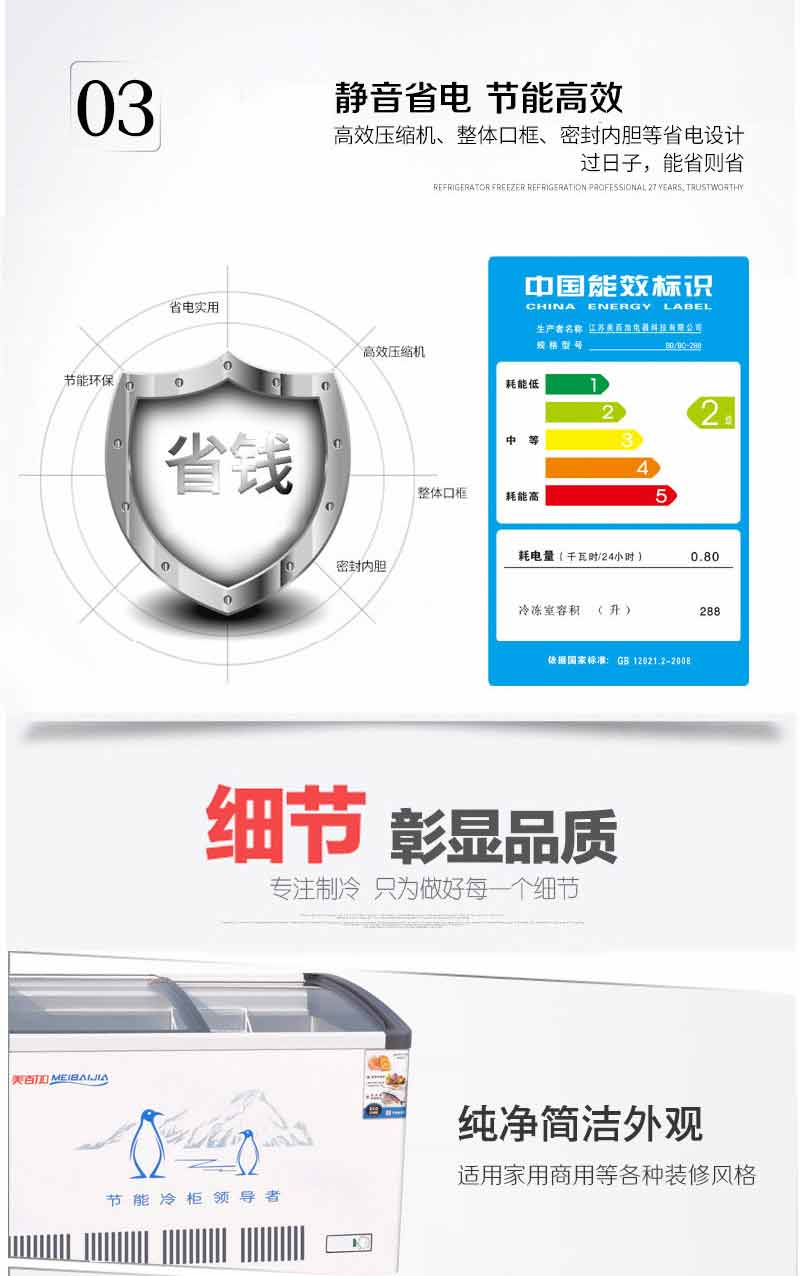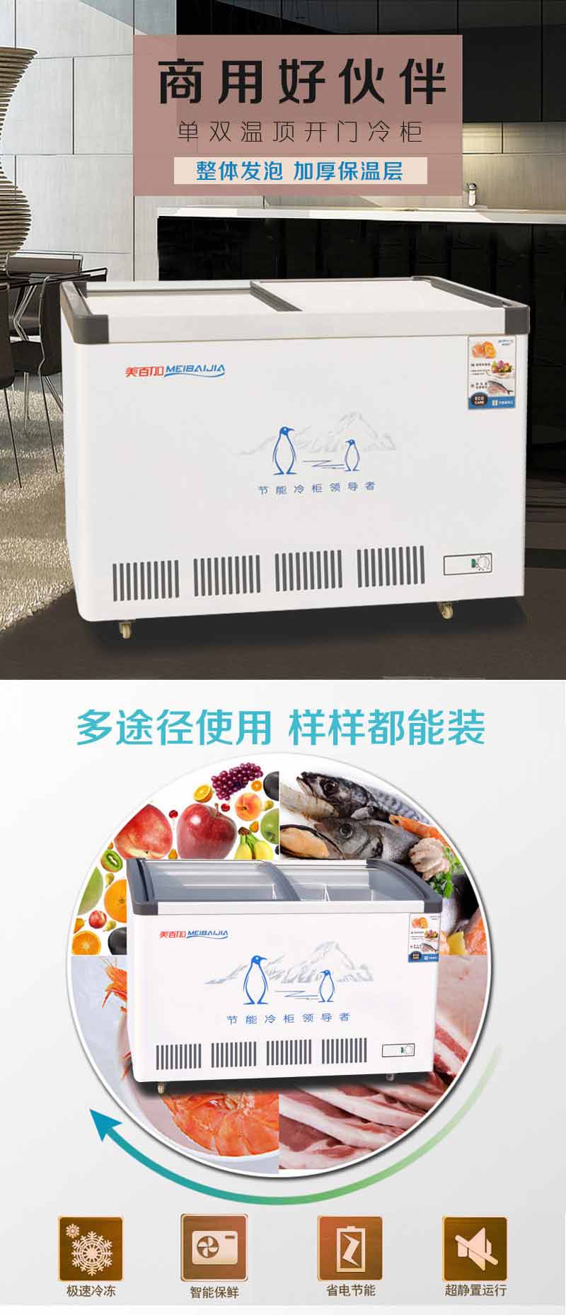 1.09米408L單溫圓弧玻璃深底