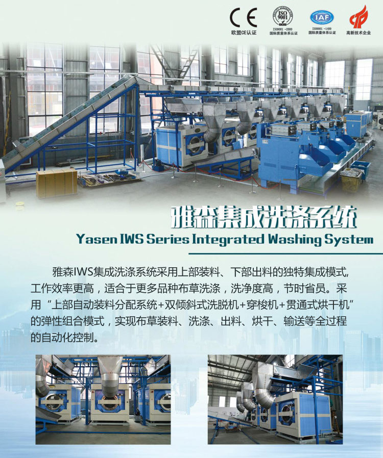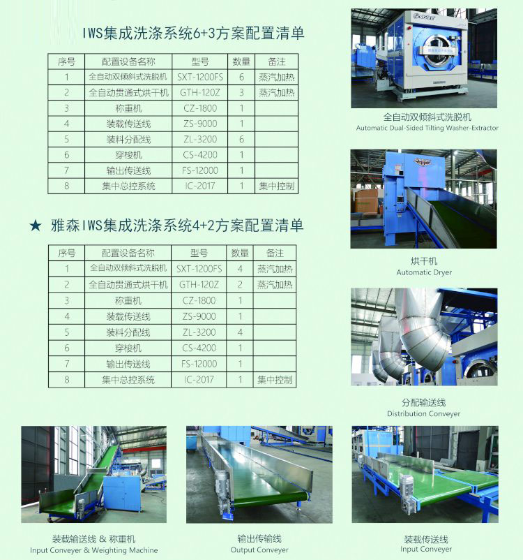 一、集成設(shè)備為高端5星級(jí)大酒店,大型水洗廠,大型三甲醫(yī)院和洗滌質(zhì)量要求很高,又需要高速、高效、節(jié)能、省時(shí)、省人工大規(guī)模洗滌的高端客戶專業(yè)設(shè)計(jì)制造。具有快速自動(dòng)進(jìn)料與自動(dòng)快速傾斜出料功能。